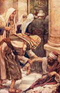 On one hand there is a man who has been crippled all his life, and on the other hand, there is the beautiful gate to the temple.