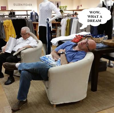 A habit to which I have become accustomed since my retirement is to accompany my wife and young son to the large local indoor shopping mall. I just love to sit there and relax while they shop. Sometimes I simply people watch. Other times I may engage another sitter in a lively conversation conquering the world's problems. Then, sad to say, at times I will just take a little snooze.